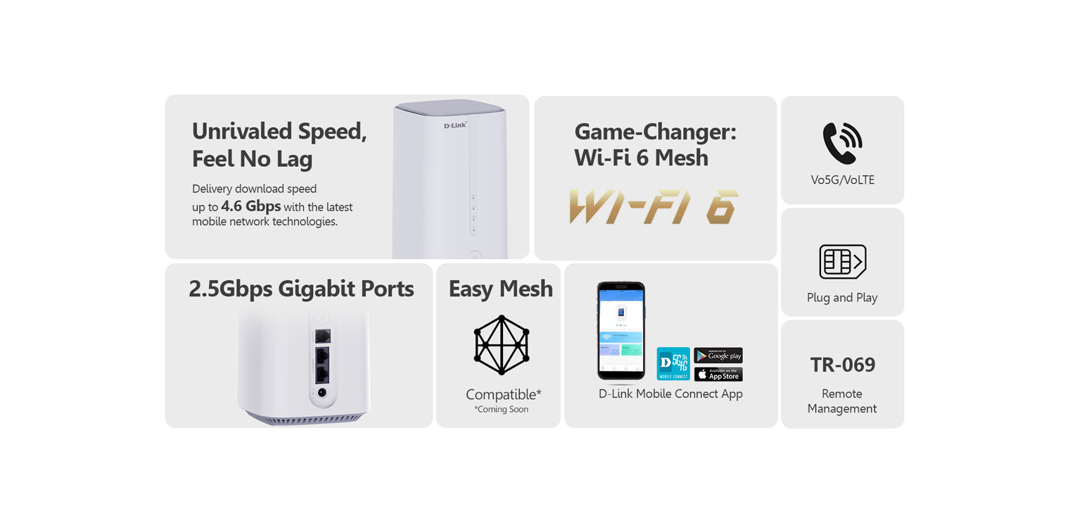 D-Link Mobile Wi-Fi Routers provide effortless, plug-and-play Wi-Fi. Enjoy robust, reliable internet access for your fast-paced lifestyle, whether you're using a Nano-SIM for immediate mobile Wi-Fi or a wired Ethernet connection for fixed setups. No complex configuration required.