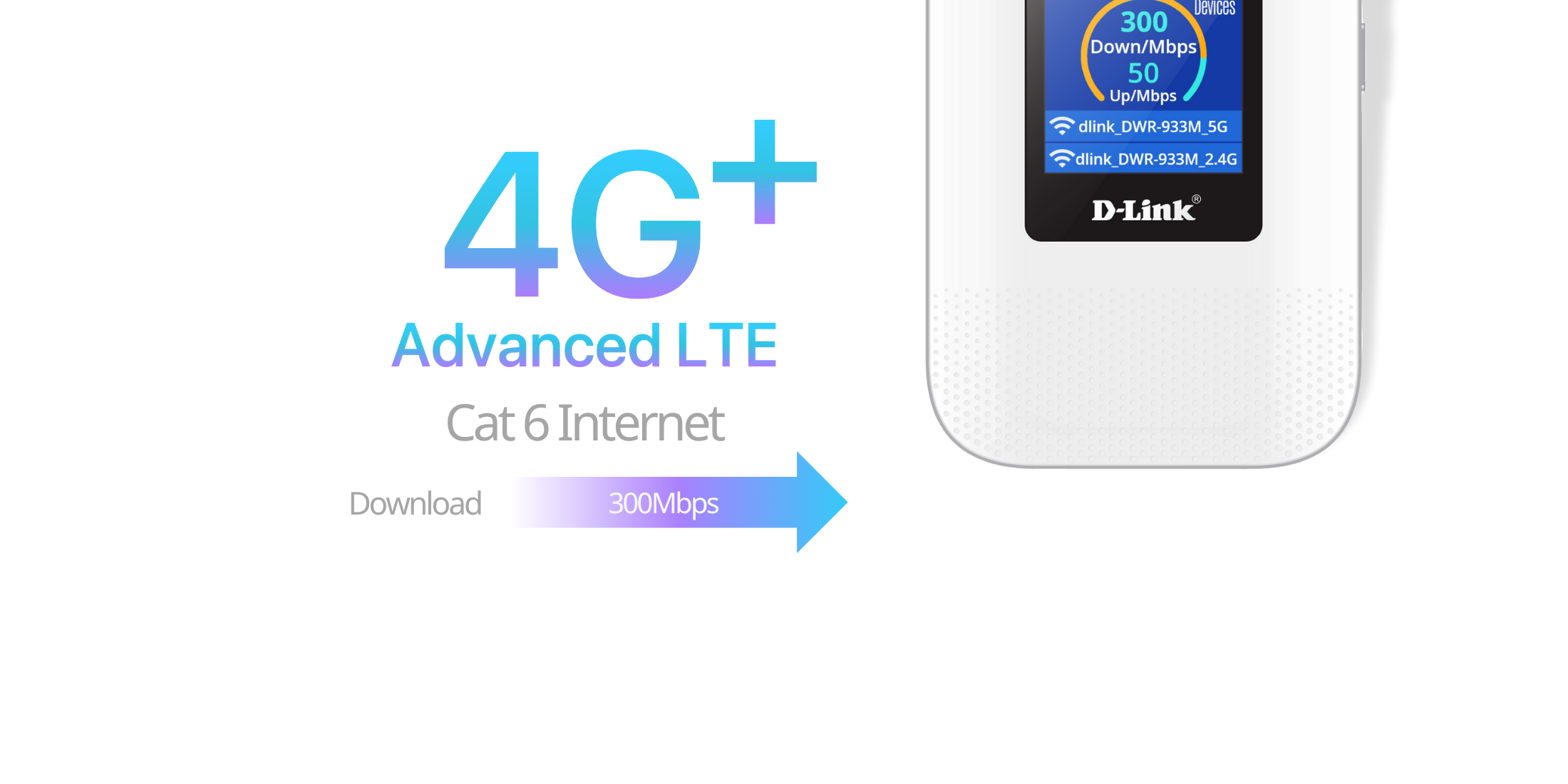 - 4G speed up to 300Mbps DL / 50Mbps UL